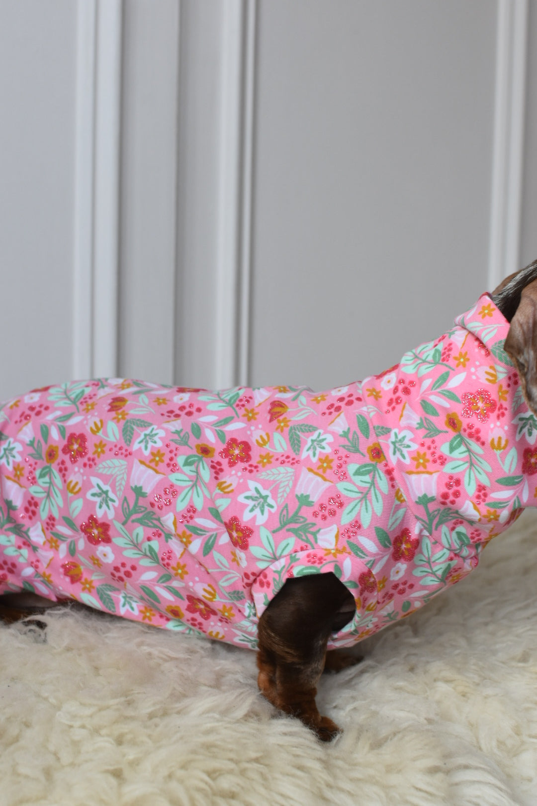 Utterly gorgeous sparkly pink floral design in lightweight, soft and stretchy jersey!