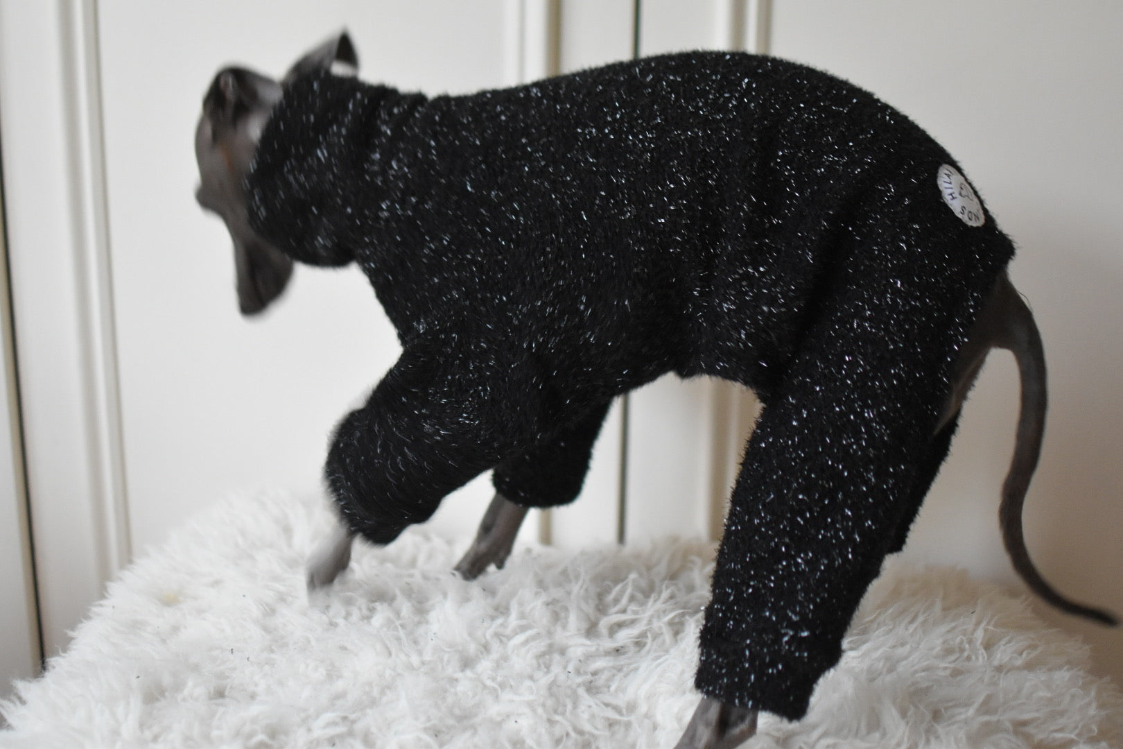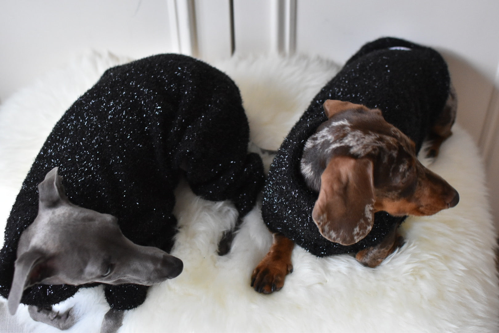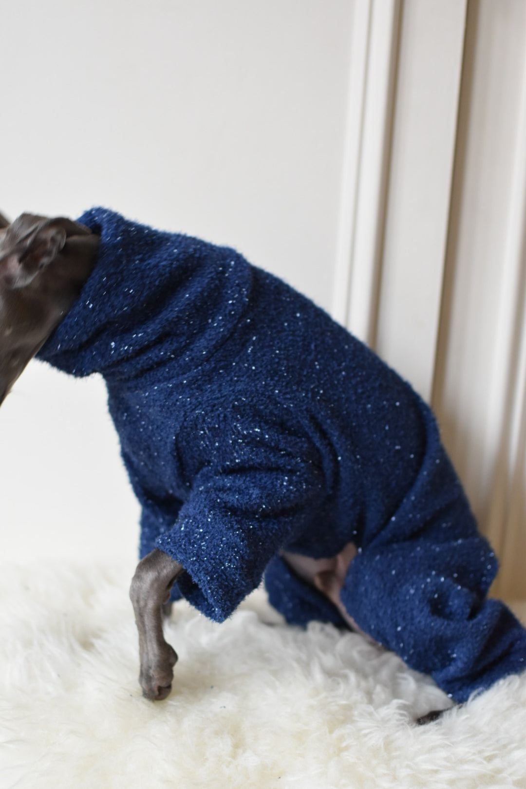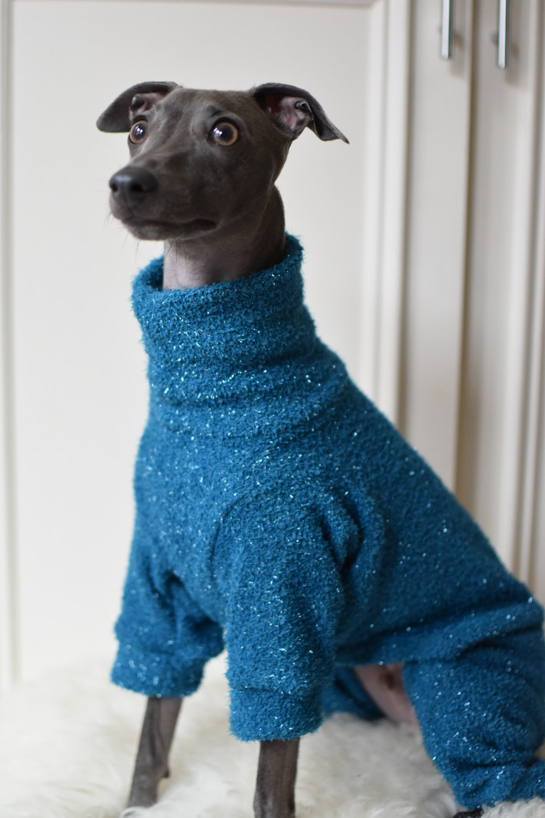 It’s super sparkly and chic whilst also super comfortable, soft, warm and stretchy cotton/ polyester mix material.